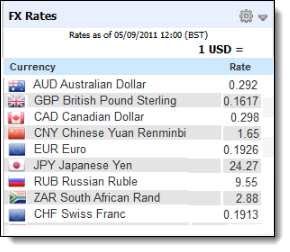 Note: The FX Rates widget is not displayed if a user does not have the appropriate functional entitlements.